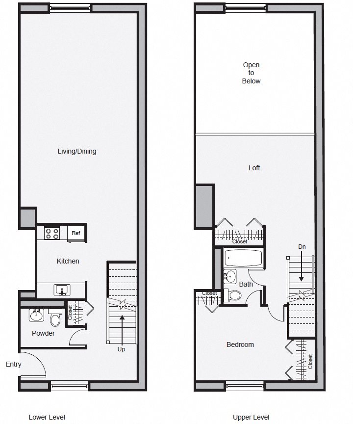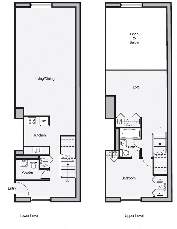 | 1-Bedroom Duplex | 1 | 1 | 704 | $1,925 -to $2,475 /MO | |