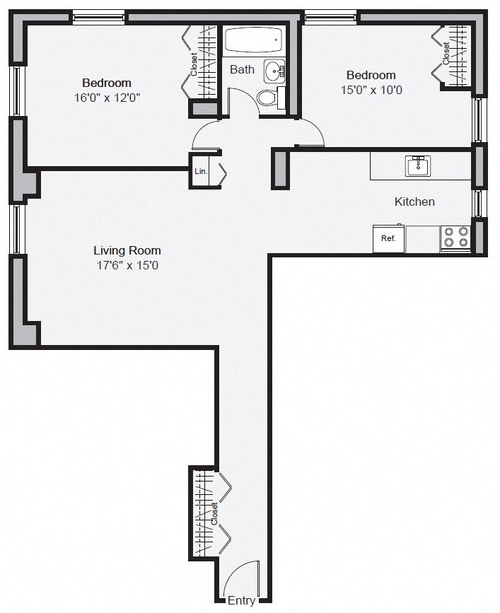 | 2-Bedroom Duplex | 2 | 1.5 | 1,200 -to 1,218 | $2,950 -to $3,110 /MO | |